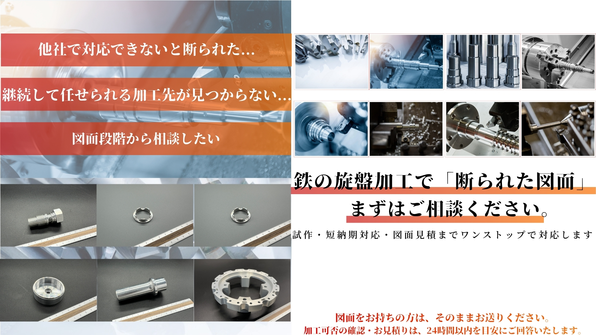 「精度が出ない」「納期が間に合わない」「小ロット対応してくれる業者が見つからない」といった課題に対し、鉄の旋盤加工に特化した加工体制で、品質・スピード・コストの最適解を提供します。